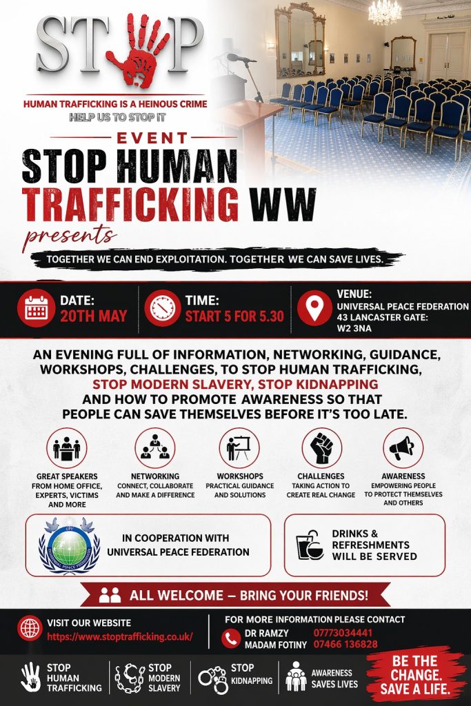 Join us for an evening of awareness, workshops, networking, and expert speakers focused on stopping human trafficking, modern slavery, and kidnapping.