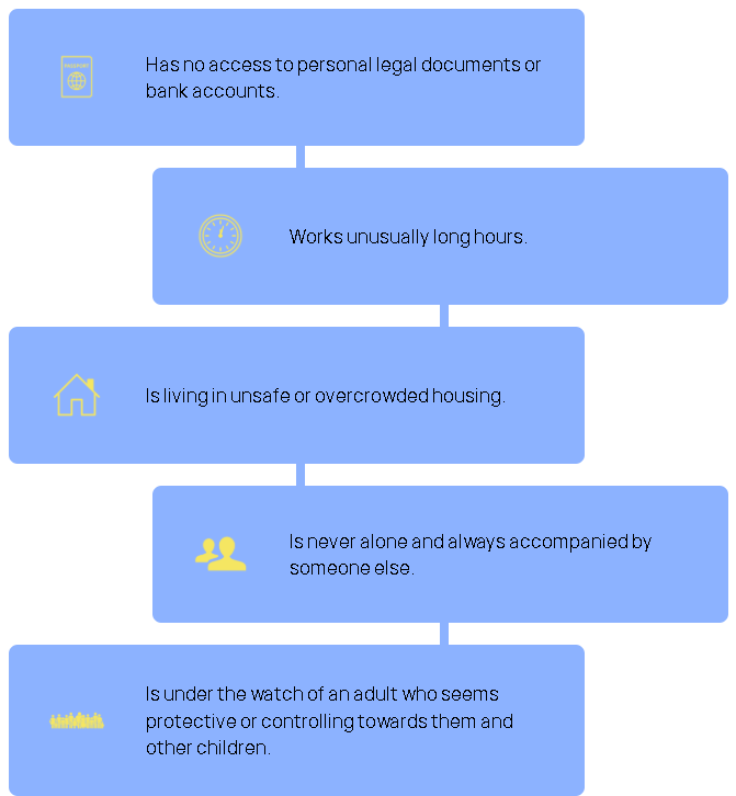 Here are several warning signs that could suggest someone is being trafficked: